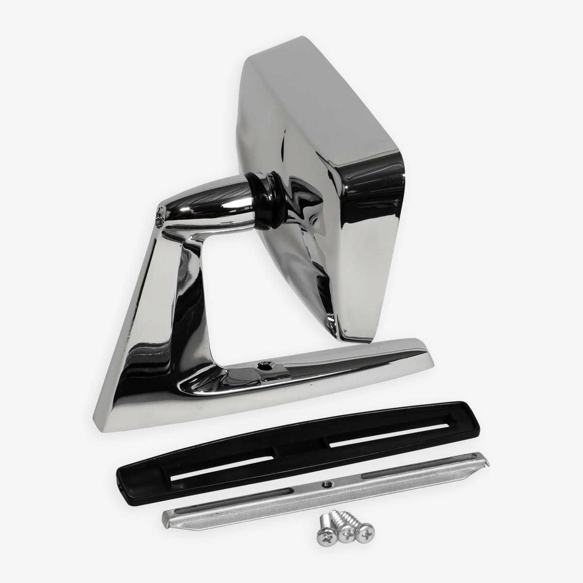 En mycket snygg, kromad och prisvärd backspegel som med sin klassiska look passar på alla typer av USA-bilar, klassiska bilar och veteranbilar. Mycket populärt val till 60- och 70-talsbilar, muskelbilar, vans och pickuper. Passar till både höger och vänster sida. Levereras med packning samt monteringsskena i metall och skruvar.