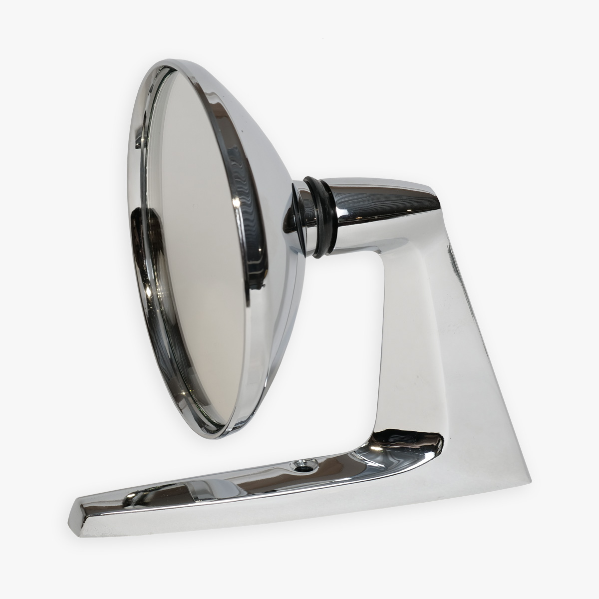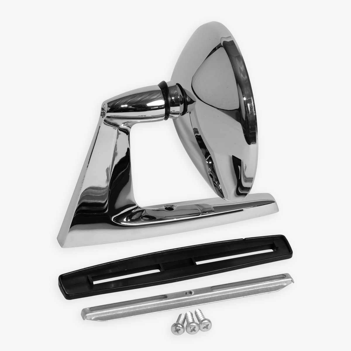 En mycket snygg, kromad och prisvärd backspegel som med sin klassiska look passar på alla typer av USA-bilar, klassiska bilar och veteranbilar. Mycket populärt val till 50- och 60-talsbilar. Passar till både höger och vänster sida. Levereras med packning samt monteringsskena i metall och skruvar.