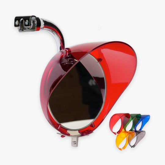 Keps till backspegel i transparent, färgad plast som passar till våra runda 4-tums backspeglar till exempel Peep Mirror och Sidemount Mirror. Kepsen kläms runt spegelhuset och låses fast med en skruv som sitter i fästet. Ett riktigt fränt tillbehör för den som gillar att utrusta bilen med extra och ovanliga tillbehör. Köp också matchande färgade lyktkepsar och vindavvisare.