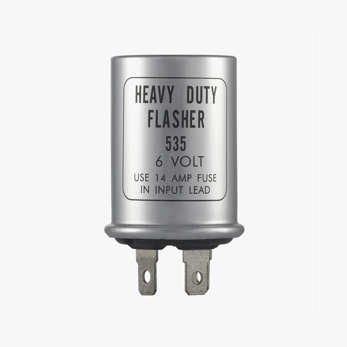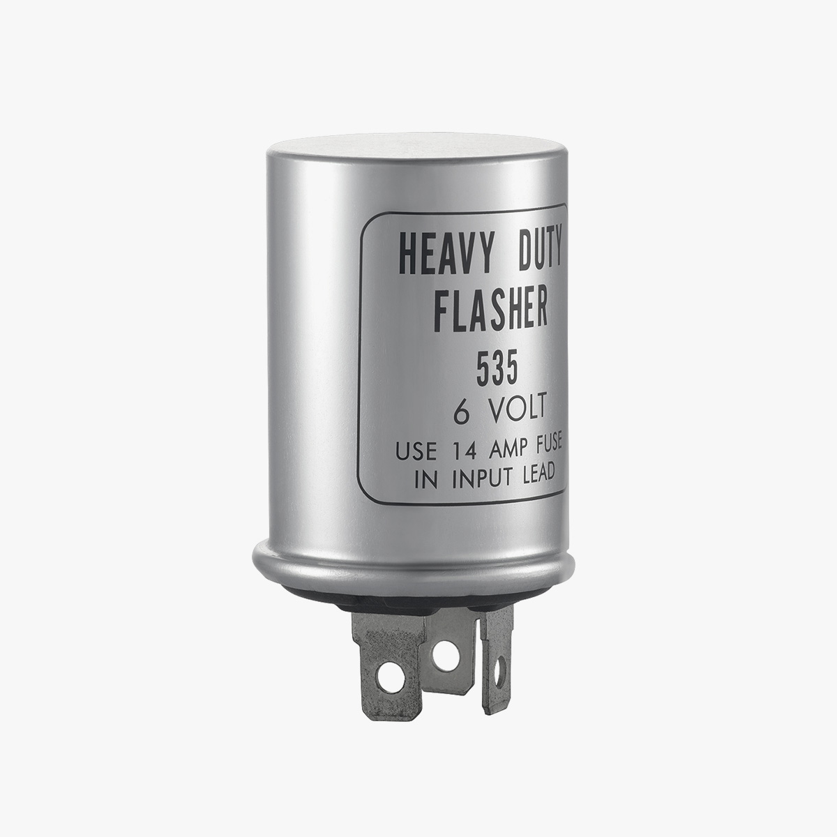 Blinkersrelä anpassat för fordon med 6V elsystem. Reläet säkerställer korrekt blinkfrekvens och stabil funktion på både fram- och bakblinkers, även på äldre fordon med originalelektronik. Utrustat med P-anslutning för en separat indikatorlampa i instrumentpanelen, vilket gör det idealiskt för klassiska bilar där endast en gemensam blinkersindikator används. Ett driftsäkert och lättinstallerat relä för renovering, ombyggnad eller ersättning av originaldel.