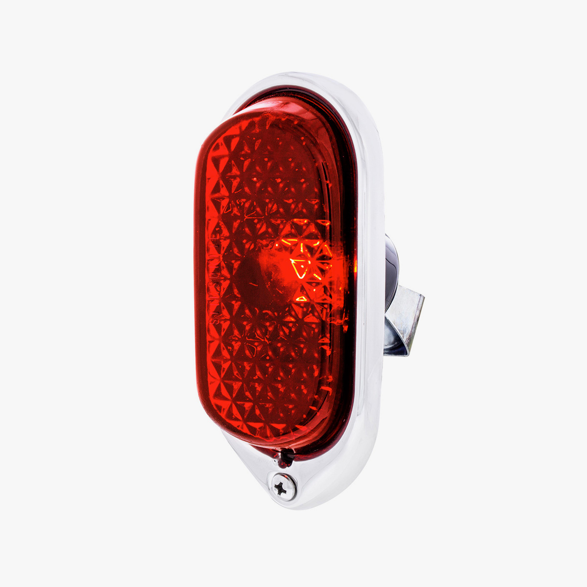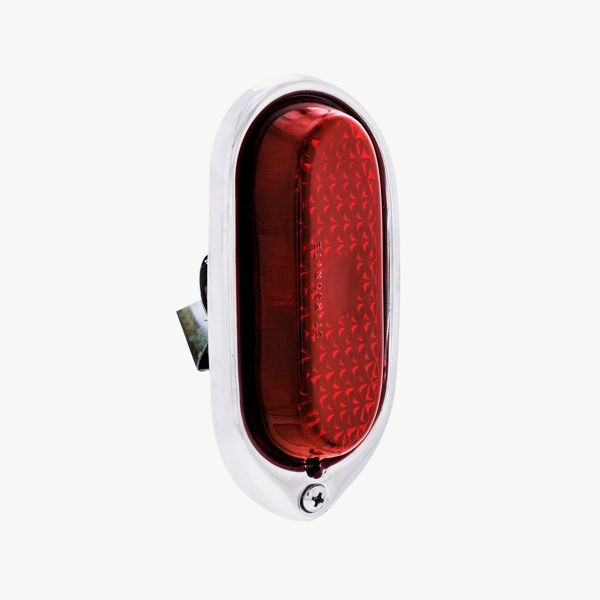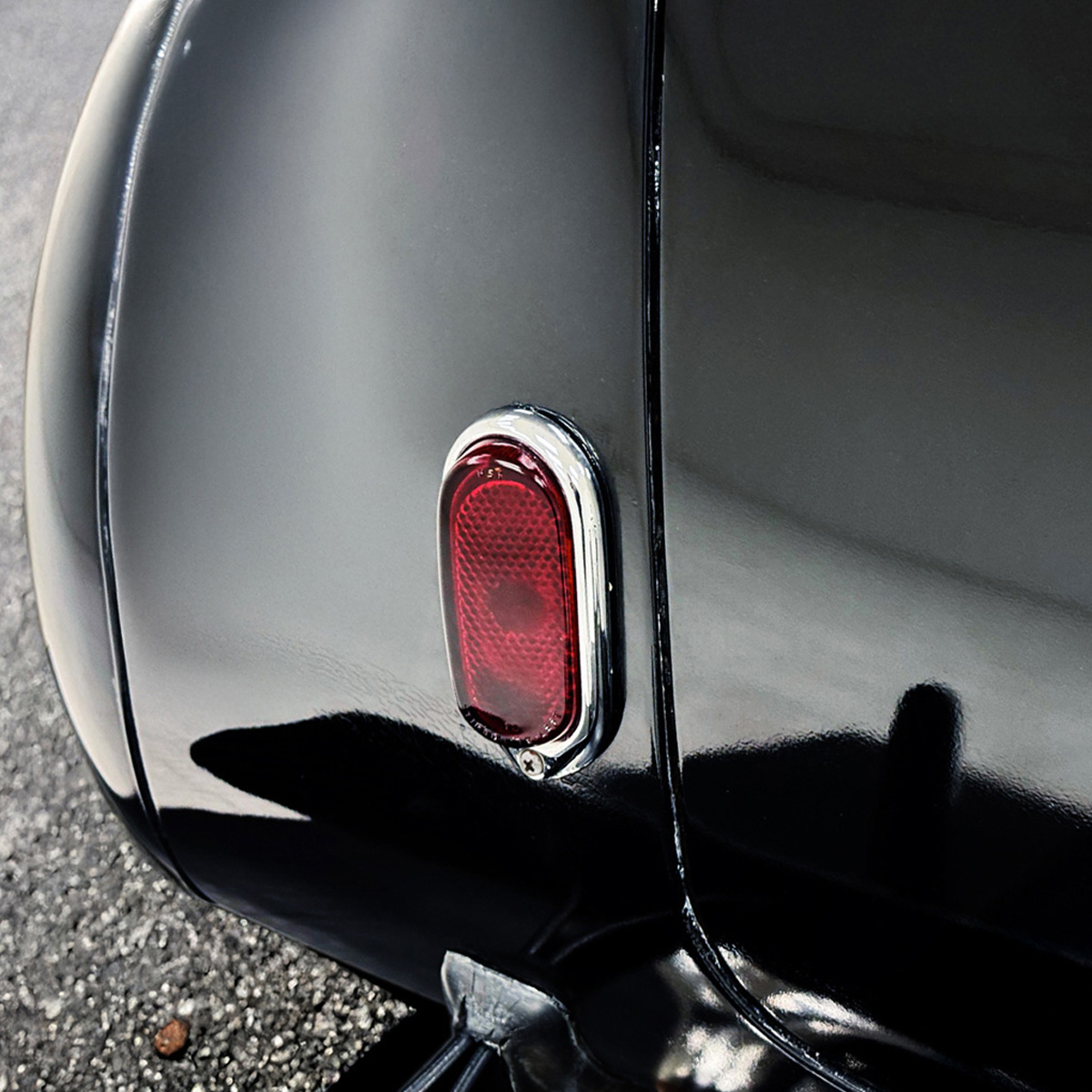 Original baklampa till Chevrolet Master och Master Deluxe årsmodell 1940. Mycket fin, nytillverkad baklykta med blanksvart pulverlackerat bakstycke och rostfri sarg runt lampglaset. Lampglaset har märkningen Stimsonite stansad på utsidan. Baklampan levereras med förmonterad 12V glödlampa samt kablar som är ca 29 cm.