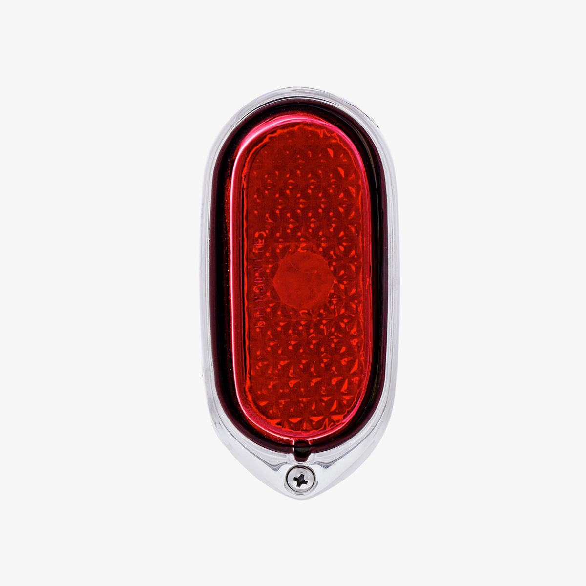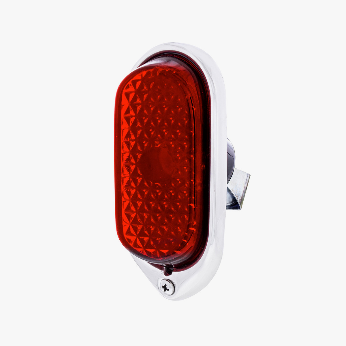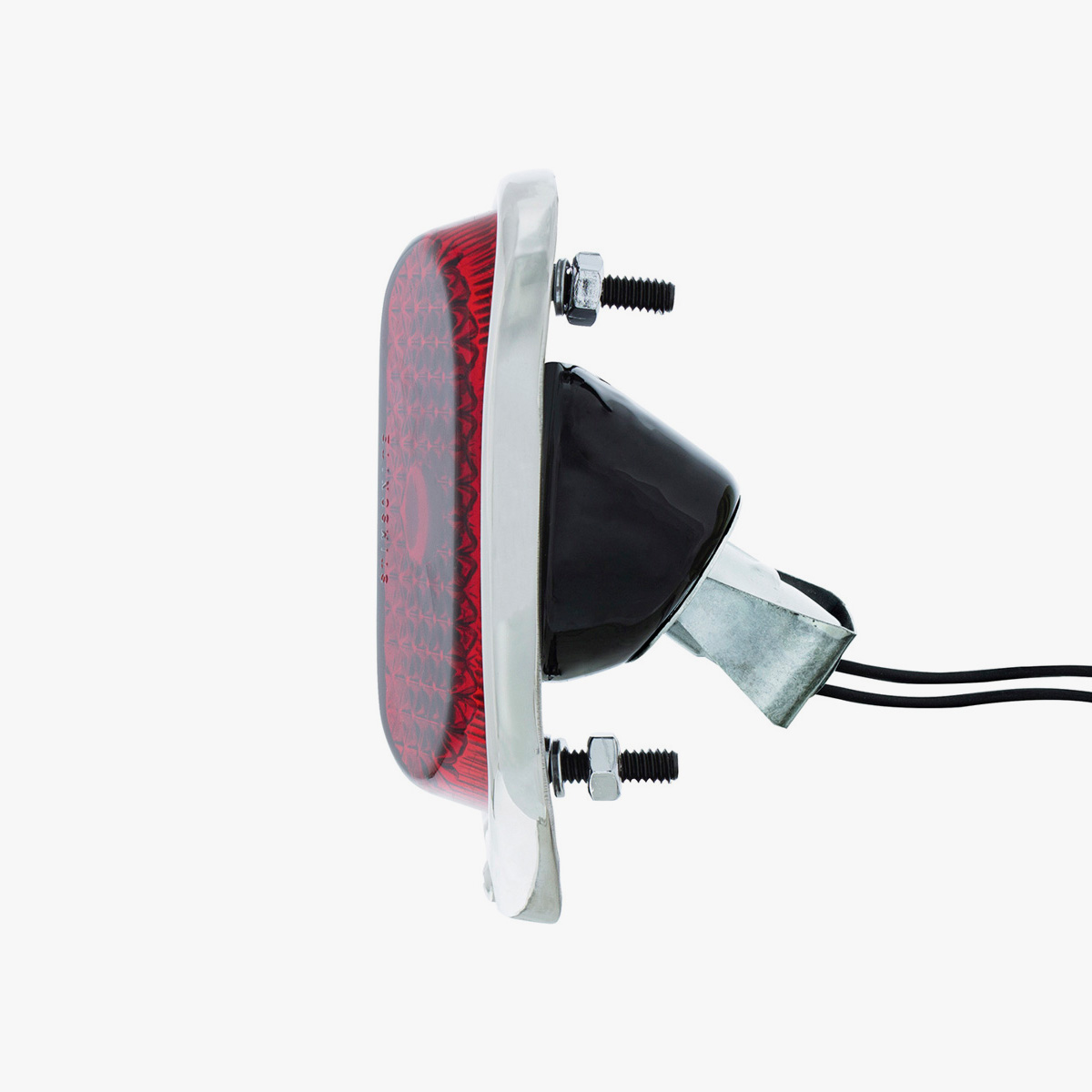 Original baklampa till Chevrolet Master och Master Deluxe årsmodell 1940. Mycket fin, nytillverkad baklykta med blanksvart pulverlackerat bakstycke och rostfri sarg runt lampglaset. Lampglaset har märkningen Stimsonite stansad på utsidan. Baklampan levereras med förmonterad 12V glödlampa samt kablar som är ca 29 cm.