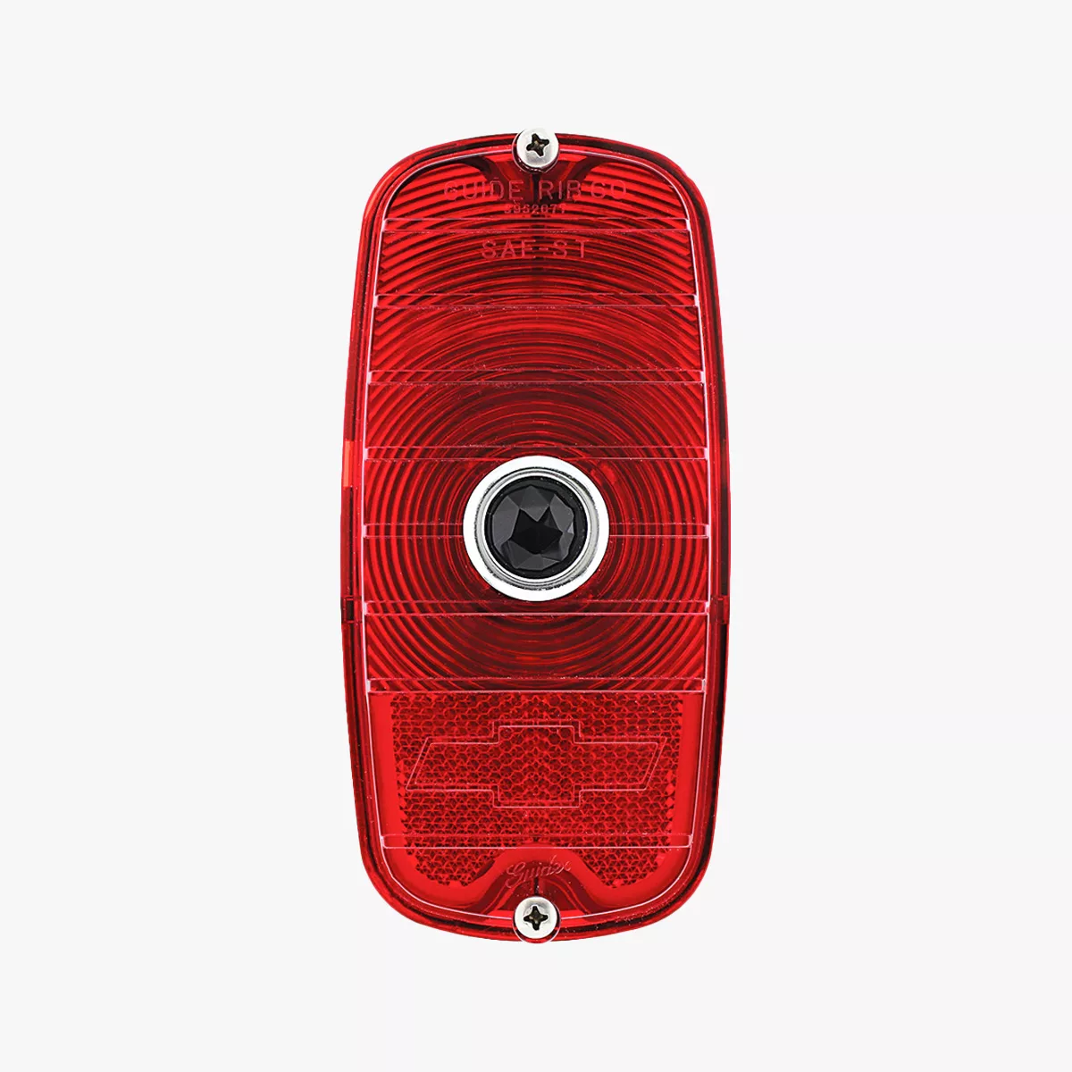 Original baklampa med förmonterade Blue Dots till Chevrolet & GMC Fleetside Pickup årsmodell 1960–1966. Komplett med packning, kablar, kontakter och glödlampa av 1157-typ. Mycket detaljerat och fint plastglas som har Chevrolets bowtie-märke i reflexen samt texten Guide RIB 60 SAE-ST i ovankant. Finns även i en variant utan Blue Dots. Säljs styckvis.