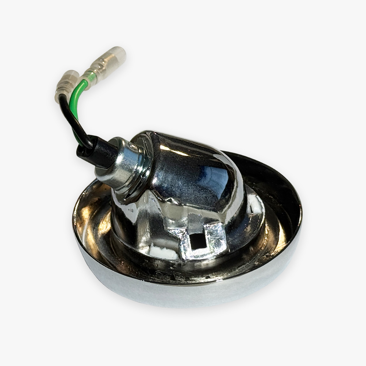 Original innerbelysning till flera GM-modeller årsmodell 1959–68. Hus i kromat stål med gjuten räfflad dekor och lampglas i vit plast som ger rätt utseende och ljus. Mycket fin finish och hög kvalitet. Tillverkad enligt OEM-specifikationer och enkel att installera.