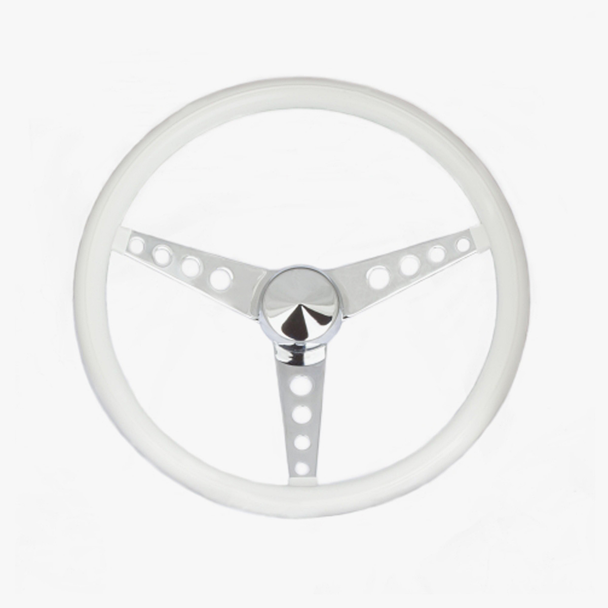 Denna klassiska ratt från välkända Grant har ett vitt vinylgrepp och är en riktig klassiker från 60-talet. Den här typen av rattar var oerhört populära på både hot rods och custombyggen. Finns även med svart färg.